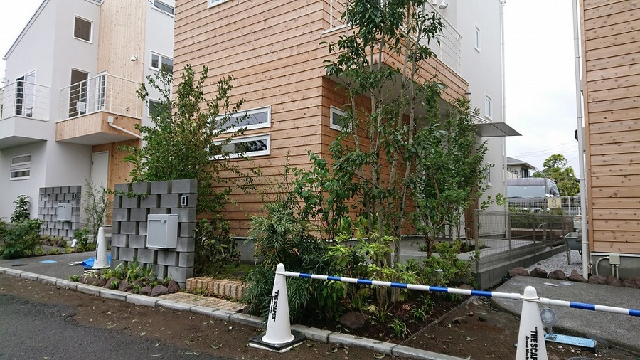 引き続き残り2棟(条件付き注文住宅)の施工が残っている中、順調に緑が育ち雰囲気を作り始めています。