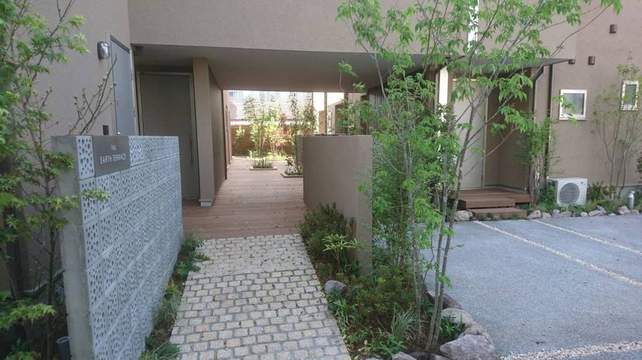 ポーチ階段が無いと賃貸なのに中庭と部屋の連続性が生まれ、孤立感の無い本来あるべき集合住宅の中庭が完成しています。後日、ブログ等で詳しく写真をアップします。